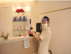 ・受付周り、ドアノブ、ベット、トイレ、使用機器など、お客様を含めた多くの人が触れる箇所への消毒の徹底