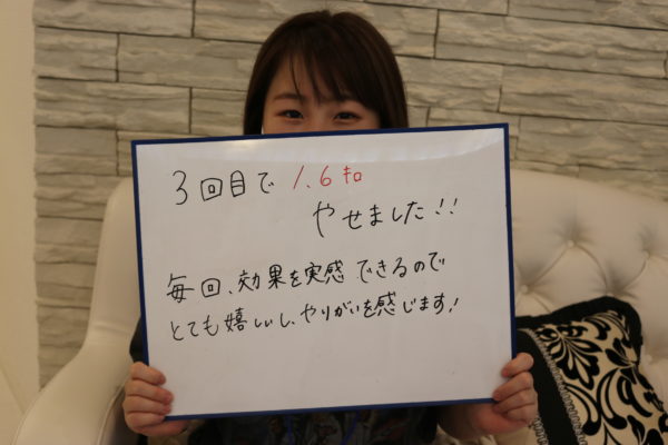 1.6㎏痩せて、毎回お写真をコース後お見せしてるのですが実感頂いて、頑張ってくださってます。